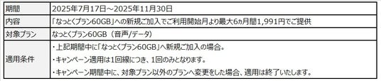 ストリーミングやクラウドサービスの普及で、データ利用量が増加していることや、お客様のアンケートから、大容量プランのご要望が多いことを受け、「なっとくプラン60GB」をラインナップに追加しました。