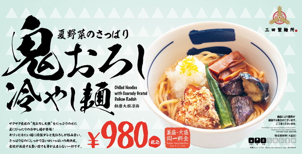 三田製麺所は7月22日から、夏の新商品「夏野菜のさっぱり鬼おろし冷やし麺」を発売します。