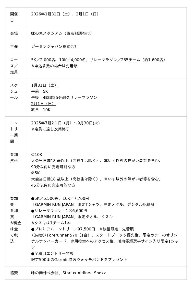 【「GARMIN RUN JAPAN 2026」 開催概要】