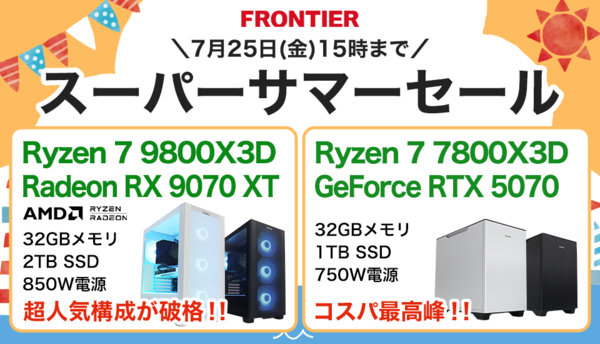 FRONTIER「スーパーサマーセール」開催!GeForce RTX 5070搭載ゲーミングPCが23万円台で登場