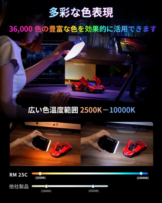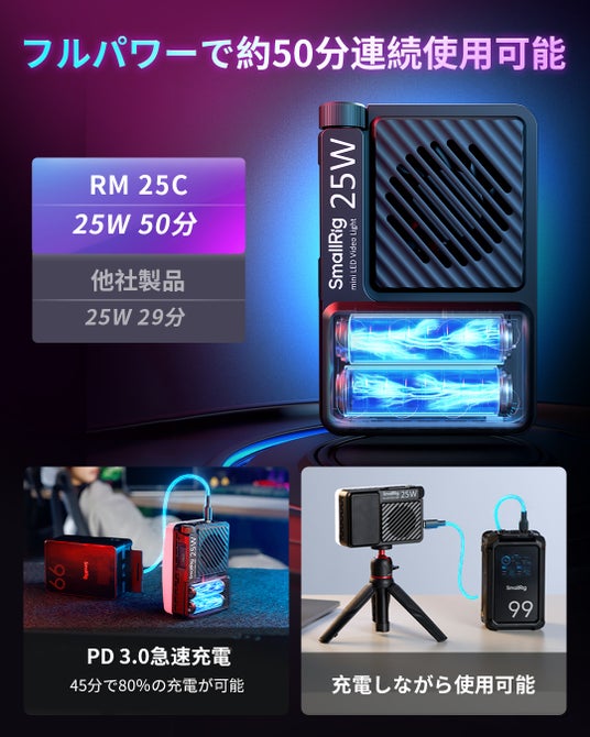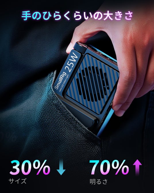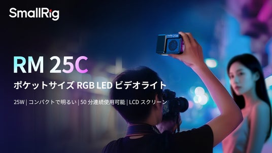 SmallRig Japan株式会社(以下、SmallRig)は、RGB LEDビデオライト「RM 25C」(以下、RM 25C)を発表いたします。RM 25Cは、SmallRig初の高出力RGBミニビデオライトです。コンパクトでありながらパワフルで、50分間の長時間駆動と、広い色温度と色域制御を可能にするフルカラーRGB照明を備えています。2025年7月10日(木)より、SmallRigの公式ウェブサイトにてご購入いただけます。