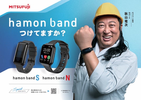 ミツフジ株式会社(本社:京都府精華町、代表取締役社長:三寺 歩、以下、ミツフジ)は、猛暑リスクを可視化する「hamon band」シリーズ(hamon band S/hamon band N)の“キャンペーン隊長”として、お笑い芸人・俳優・クリエイターとして多才に活躍するロバート秋山竜次さんを起用したことをお知らせします。