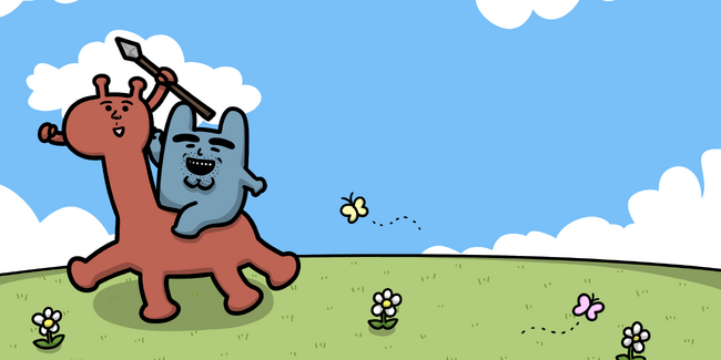 『きよし(青いキャラ)』と『のぶゆき(赤いキャラ)』は、いつもニコニコ笑顔で悩みがなくハッピーなキャラクターです。