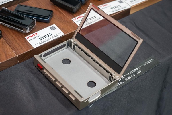 FIIOの「SK-M21C」は、カセットテープをモチーフにしたポータブルオーディオ用のケース。「FIIO M21」(実売6万円弱)を収納して使える。物理ボタンで再生/一時停止でき、装着すると、画面がテープに変わるギミックを持つ。ウォークマン Aなどでもあったコンセプトだが、大きさがテープに近いのでリアリティもある。実売価格は5500円前後。