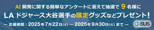 エクセルソフト株式会社 (東京都港区) は、IA プラットフォームをターゲットとするソフトウェア開発者向け技術ポータル 「iSUS」 にて、AI 開発に関する簡単なアンケートに回答いただいた方の中から、抽選で 9 名様にロサンゼルス・ドジャース大谷翔平選手の限定グッズを含む豪華景品が当たるキャンペーンの応募受付を 7 月 22 日 (火) より開始いたしました。