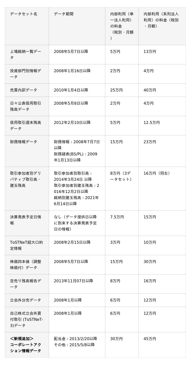 法人向けデータ配信サービス J-Quants Proデータの新規追加及び拡充!
