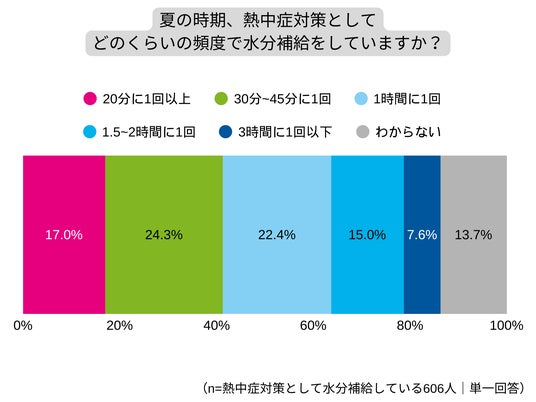 また、水分補給の頻度についても調査したところ、3時間以上空けてしまう人も少なくないことが明らかになっています。