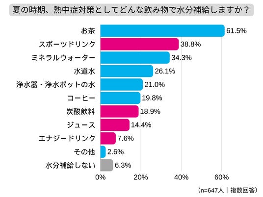 ・夏の水分補給、1位「お茶」に続き2位が「スポーツドリンク」