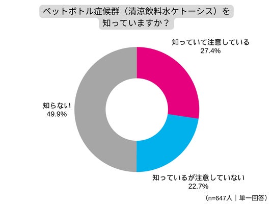 ・約半数が「ペットボトル症候群」を知らない、2割以上が知っていても注意していない