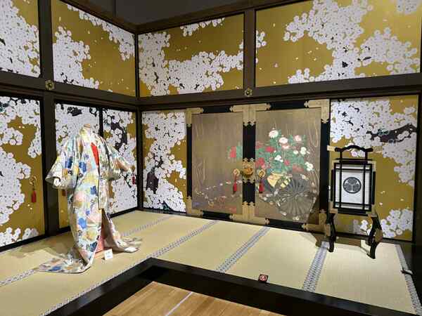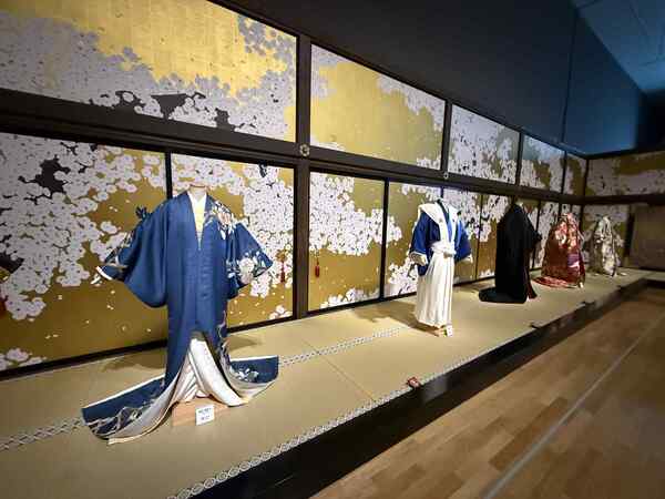 展覧会の冒頭では、よしながふみの漫画『大奥』を原作とし、NHK総合の「ドラマ10」枠で放送された男女逆転の『大奥』(2023年1月10日〜3月14日。同年10月3日~12月12日放送)の衣装やセットが展示され、興味津々の世界に誘ってくれる。