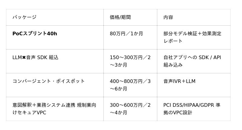 - 金融・医療・公共領域向けに カスタム受託開発 & PoC スプリント(40h/80万円) を開始