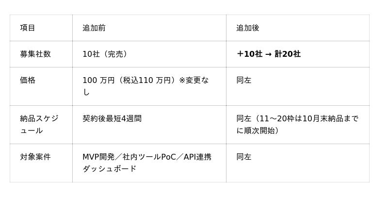 - より多くの中堅企業が「PoC を先延ばしにしない」環境を提供するため、追加枠を緊急決定