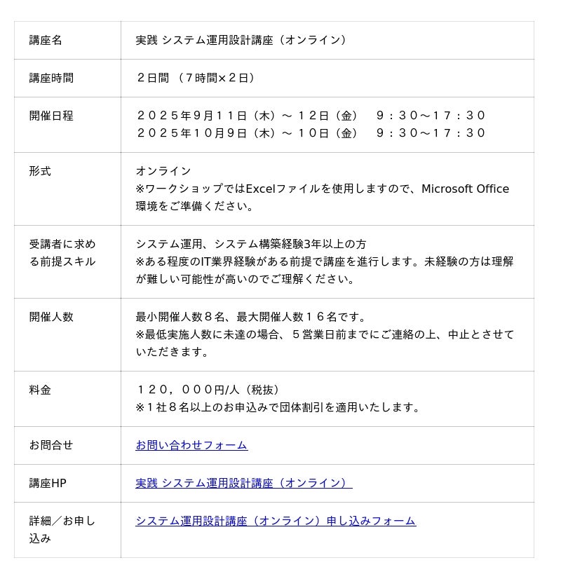 <運用設計担当者必見!>運用設計の曖昧さを解消!400名超が学んだ実践システム運用設計講座(オンライン)を今年も開催!
