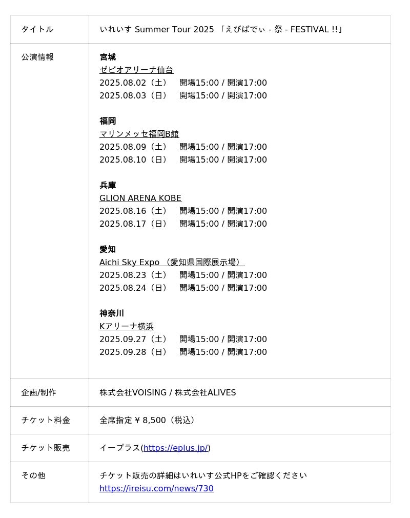 ■『いれいす Summer Tour 2025「えびばでぃ - 祭 - FESTIVAL !!」』全国アリーナツアー 一般販売 好評受付中