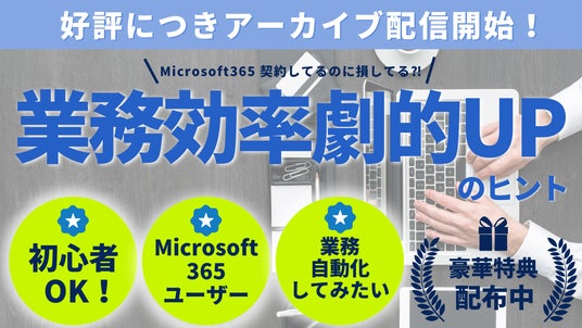 株式会社IC(本社:東京都品川区/東証スタンダード4769/代表取締役社長執行役員:齋藤良二)は、2025年5月27日に開催したオンラインセミナー「Microsoft365 契約してるのに損してる!?業務効率劇的UPのヒント」のアーカイブ動画を、2週間限定で公開いたします。