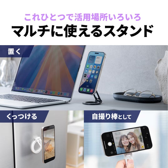 サンワサプライ株式会社(本社:岡山市北区田町1-10-1、 代表取締役社長 山田 和範)が運営している直販サイト『サンワダイレクト』では、両面マグネット式でスマホを簡単取り付けができ、スタンドを好きな場所に貼り付けることができるMagSafe対応スマホスタンド「200-STN082W」を発売しました。