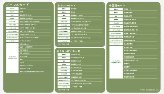 また、日本語「ノーマル」と中国語モードには、いつでも好きなタイミングで聴くことが出来る「ランダムボイス」を搭載しました。