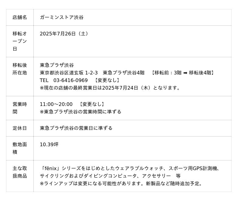 アメリカ発データ活用のプロフェッショナル、ガーミンジャパン株式会社(以下、Garmin)は、ブランド直営店「ガーミンストア渋谷」(東京都渋谷区道玄坂 1-2-3 東急プラザ渋谷3階)をフロア移転。2025年7月26日(土)より、渋谷東急プラザ4階にてオープンします。