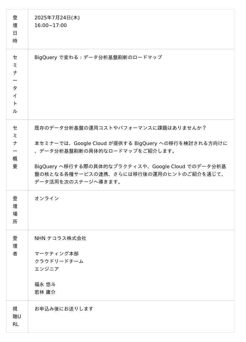 「C-Chorus」のBigQuery 移行支援サービス:https://nhn-techorus.com/c-chorus/bigquery/