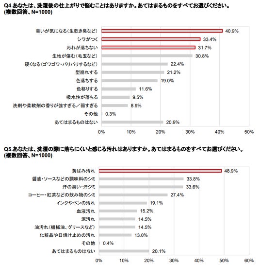 洗濯の仕上がりの悩み1位「臭いが気になる」 落ちにくい「黄ばみ汚れ」