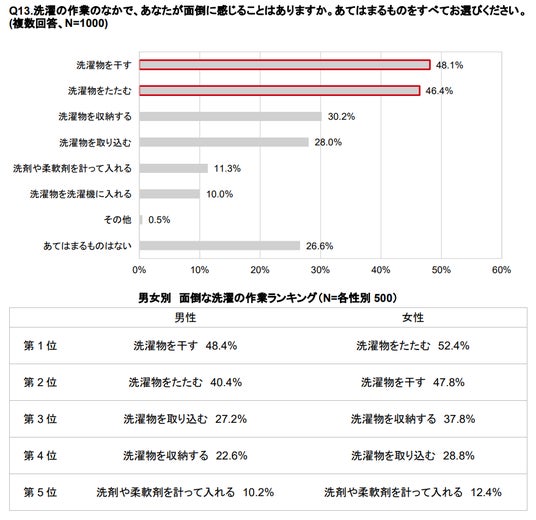 - 面倒な作業「洗濯物を干す」 女性の半数は「たたむ」