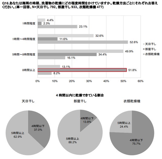 乾燥時間 部屋干しの半数が「8時間以上」 理想は4時間以内