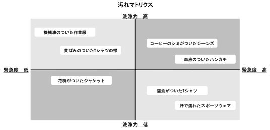 - 大矢先生監修 汚れマトリクス 汗や醤油は水洗い