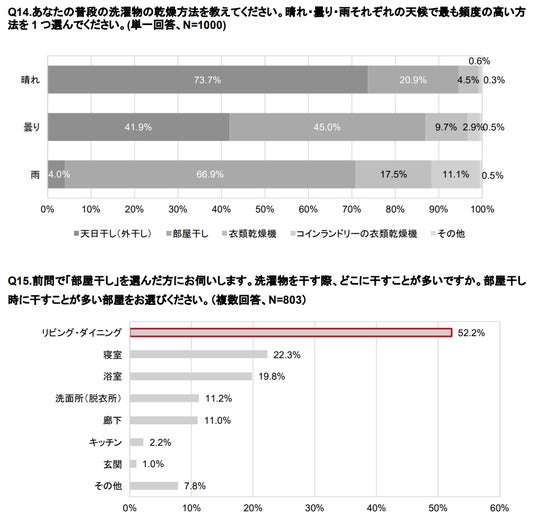 乾燥方法 晴れても「部屋干し」2割 リビング・ダイニングが最多