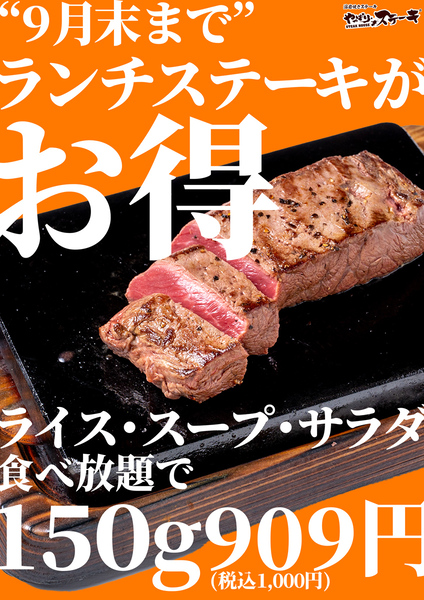 期間中、「ランチステーキ」が通常価格よりも手頃な1000円となり、スープ・サラダ・ライスはすべて食べ放題可能です。