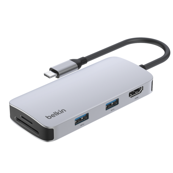 普段使いのPCはノートで、しかもMacBook Airという方も多いはず。しかし、困るのが出先で映像出力が求められる場合。会議室のモニターがAirPlay対応テレビならOKですが、MacBook Airの接続端子は基本的にUSB-C×2のみ。画面出力やUSB-A機器の接続にはUSBハブはほぼ必須です。こちらのマルチポートアダプターハブなら、SD/microSDカードの読み込みもHDMI出力も、USB-AのUSBメモリー接続もバッチリです!