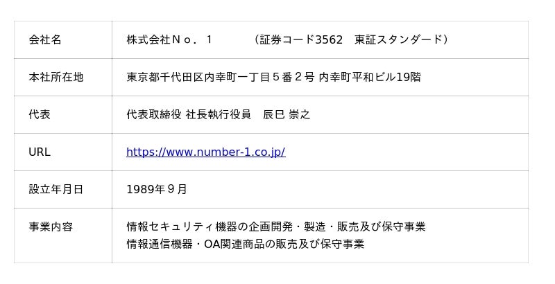 株式会社No.1(本社:東京都千代田区、代表取締役:辰巳崇之、東証スタンダード:3562、以下当社)のグループ会社である株式会社No.1パートナー(本社:東京都千代田区、代表取締役:柘植 純史、以下No.1パートナー)が販売を手掛けるハザードトークをOLED青森株式会社(本社:青森県上北郡、代表取締役:福留学、以下OLED青森)にご導入いただいたことをお知らせいたします。