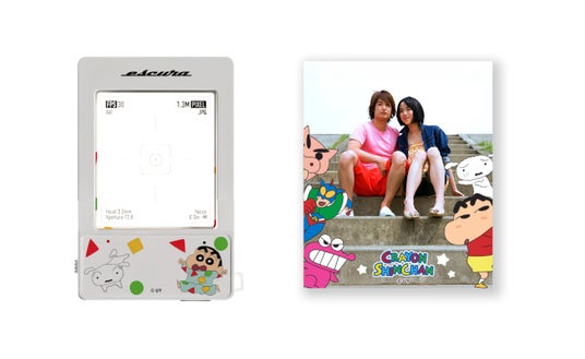 しんちゃんをはじめとするキャラクターが描かれた、持っているだけで楽しくなるような遊び心溢れるデザイン。さらに、撮影モード2で写真を撮ると、キャラクターフレームが表示され、日常の一瞬がアニメのような思い出に!どこでも一緒に、しんちゃんと思い出を残せる特別な1台です。