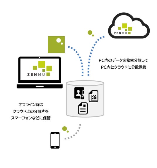秘密分散技術により、ユーザーデータを無意味化して分散保管することで、情報漏えいを抑止することが可能