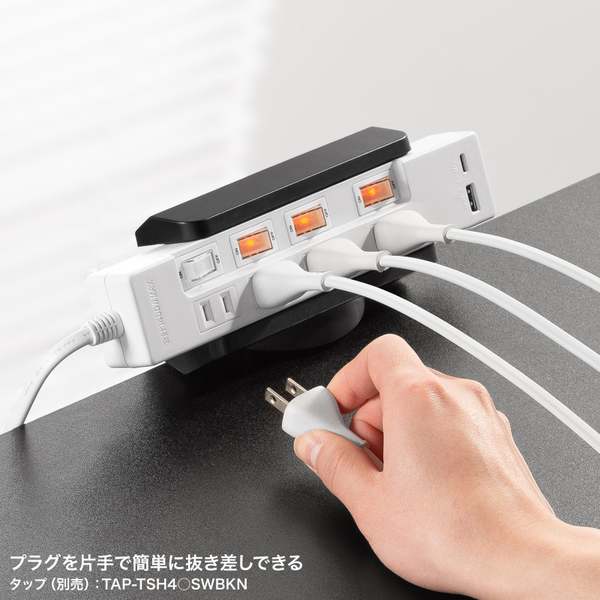 タップのしっかりとした固定はもちろん、プラグの抜き差しもスムーズに行えるため、作業効率の向上にも寄与する。さらに、背面にはコードをすっきりと配線できるクリップが搭載されているため、デスク上の見た目の美しさも保つことができるとのこと。