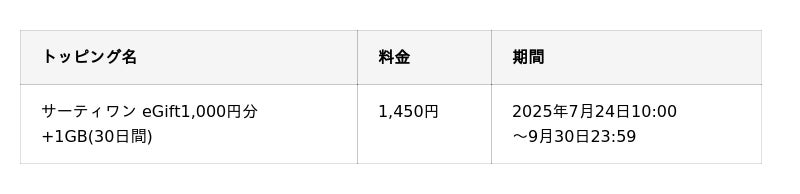 KDDI、沖縄セルラーは2025年7月24日から、povo2.0の期間限定トッピングとして、「サーティワン eGift(1,000円分)」と「1GB(30日間)」がセットになったトッピングを1,450円で提供します。約3人分のフレーバーをまとめて購入できるFRESH PACK Mini(1,000円)にも利用でき、期間限定フレーバーやお気に入りのフレーバーを思う存分楽しみたいお客さまにおすすめです。