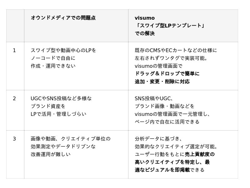 新機能「スワイプ型LPテンプレート」が解決できる問題点