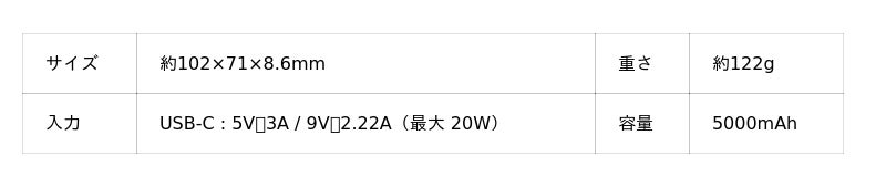 - ワイヤレスでも最大15W出力:ワイヤレス充電でもQi2対応のスマートフォンに最大15W出力で充電可能。また、iPhone 16を約1回充電可能な5,000mAhの容量を備えます。