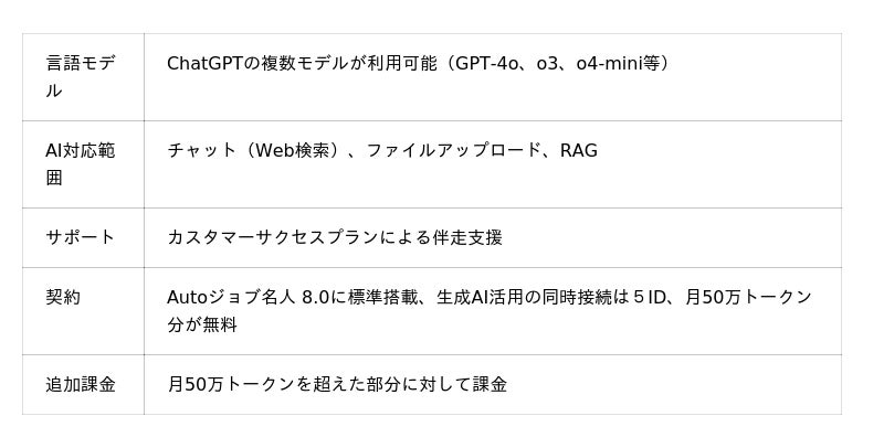 RPAでの定型業務自動化に加え、生成AIで業務の生産性向上を推進していただくことを考え、新バージョンのAutoジョブ名人Ver 8.0では、トークン課金部分だけで生成AIが利用可能です。