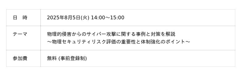 物理セキュリティが突破されサイバー攻撃が行われた事例や、そうした攻撃への対策についてご紹介するとともに、組織のセキュリティ体制強化のポイントについても解説します。