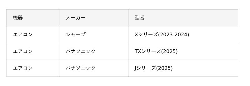 今回のアップデートでは、シャープなどのエアコン3モデルを新たに追加。専用アプリ上でモデル名を選択すれば、すぐに家電操作が始められます。