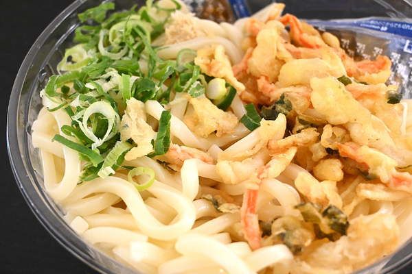 具材には、3種野菜のバラ天、ねぎ、おろし生姜が入っています。