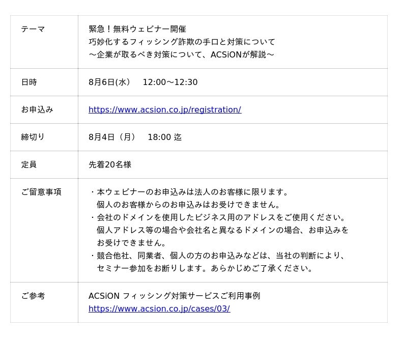 【8/6開催 無料ウェビナー】緊急!無料ウェビナー開催 巧妙化するフィッシング詐欺の手口と対策について