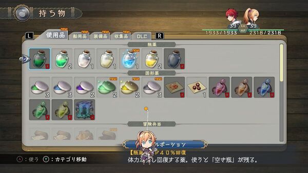 アドルをメイン操作にしてプレイしていると、カージャのスキル熟練度が育たず偏りがち。そんな人でもこの新アイテムのおかげで、スキル育成がはかどる。素直にありがたい新要素だと感じた。