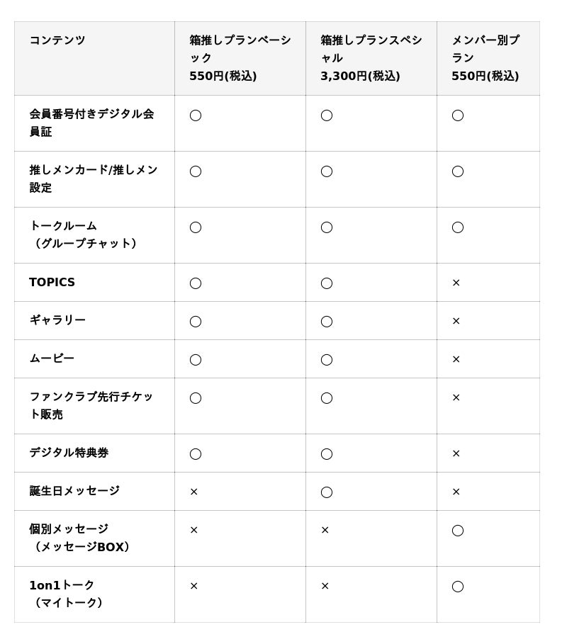 ●箱推しプラン スペシャル:月額3,300円(税込)