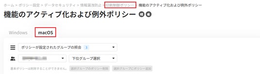 これまでのように、例外ポリシーを先に反映してから機能を有効化するなど、設定順序による制約がなくなりました。希望するすべての設定を一度に反映できるため、ポリシー設定の作業がよりシンプルになっています。