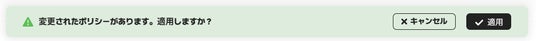 ポリシー変更時、画面下部に確認メッセージが表示され、「適用」ボタンを押した場合にのみポリシーが反映されるようになりました。これにより、誤クリックによるポリシー変更のリスクが大幅に軽減されます。