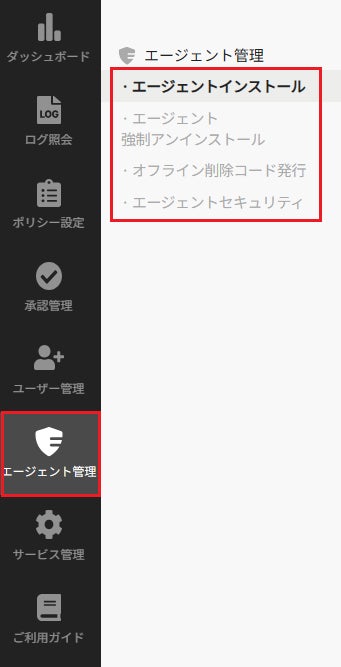 エージェントの配布やアンインストールなど、入退社時によく使うメニューなので、大メニューとして独立させ、簡単に見つけられるようにしました。