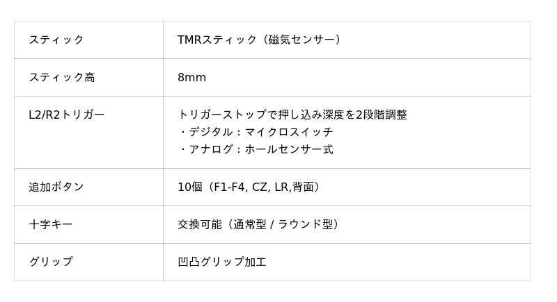TMRスティック採用:視点が勝手に動くドリフト現象を防止し、長期間の安定した操作性を提供