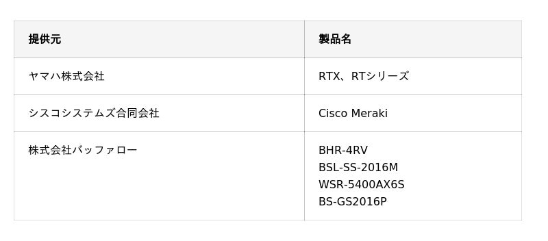 今回、脆弱性診断に対応したネットワーク機器及び診断項目は以下の通りです。