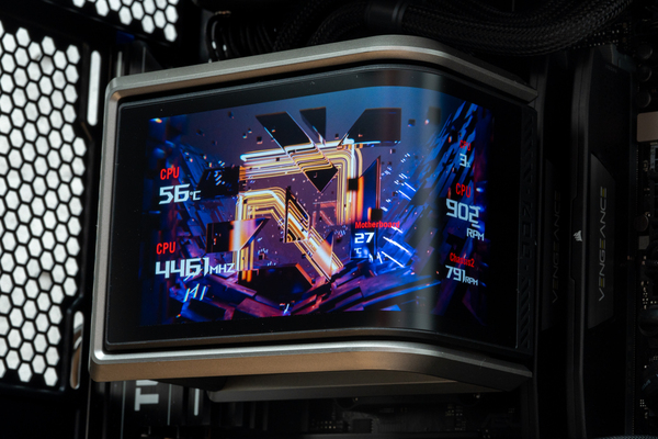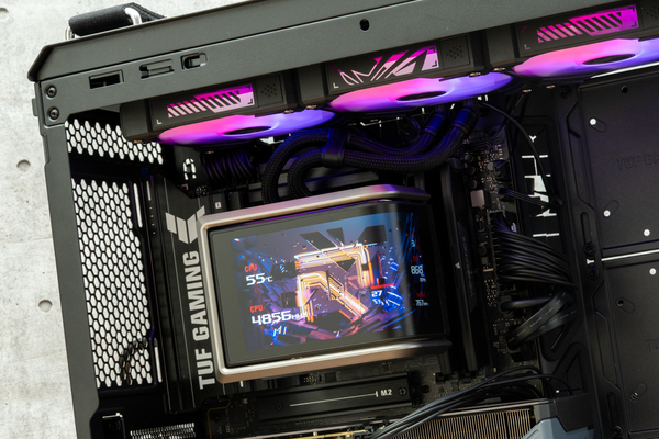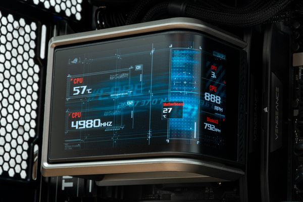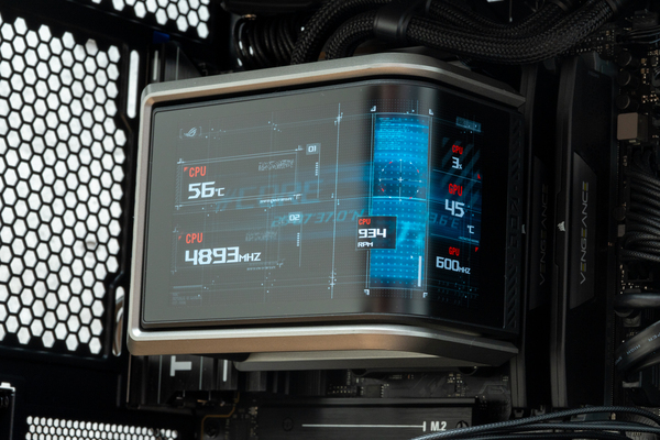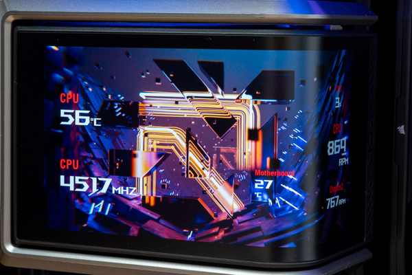 映像やハードウェア情報で、手軽にPC内部を飾れる6.67型のL字型AMOLED(アクティブマトリックス有機EL)ディスプレー(以下:L字型AMOLEDディスプレー)を備える「ROG Ryuo IV SLC 360 ARGB」。